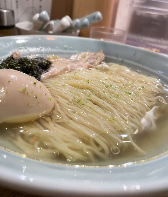명경 지수 퓨어라는 독특한 라면이 있습니다.차가운 라면이지만 순수한 국물 맛을 위해 다른 토핑 없이 면만 나옵니다.유자가 들어간 맑은 국물이 궁금해서 주문합니다.