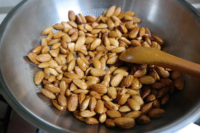 아몬드 전처리 후 생 아몬드 로스팅