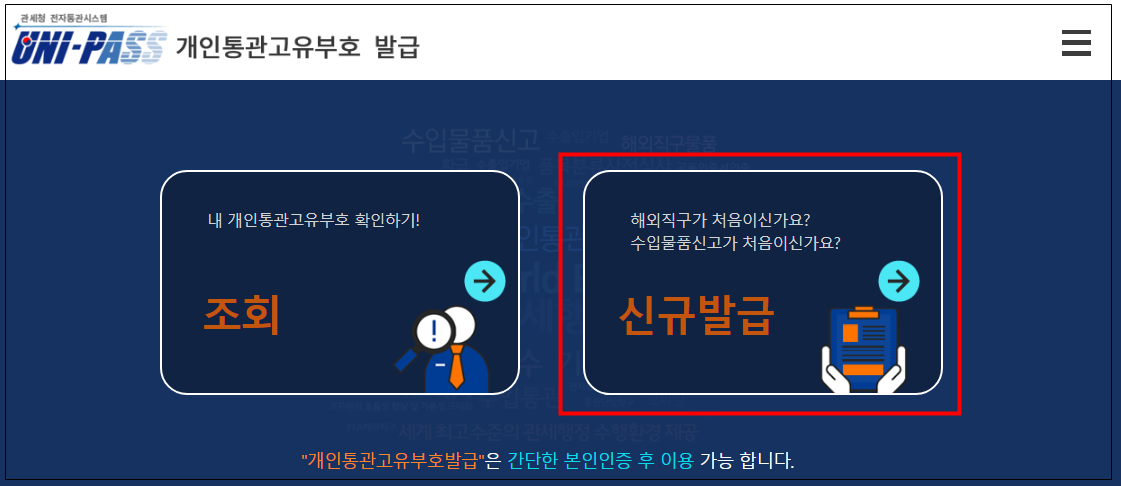 ① 통관코드 개인발급 사이트 접속