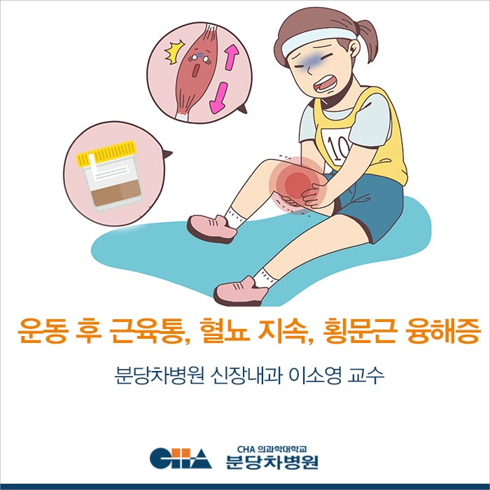안녕하세요 혈액관리본부입니다. 따뜻해지면서 운동에 대한 관심이 높아지고 있습니다. 옷차림이 가벼워지는 계절에 맞춰 몸매도 가꾸고 따뜻한 봄날 운동을 즐기기 위해서입니다. 건강을 위한 적당한 운동은 좋지만 무리한 운동은 해롭습니다! 오늘은 운동을 너무 많이 하면 근육이 녹는 횡문근융해증에 대해서 알아보겠습니다. 횡문근융해증이란?